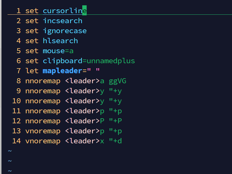 修改配置:vim ~/.vimrc,可以询问AI做一些配置。例如: